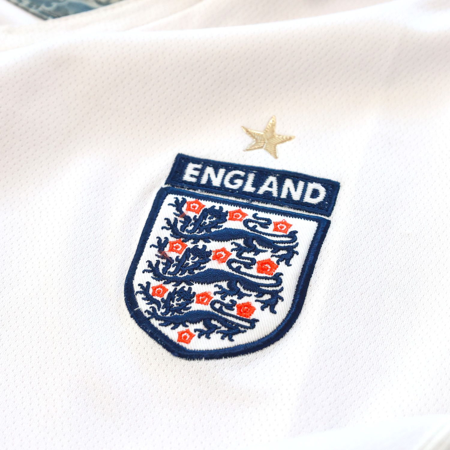 The 2005-07 home shirt. On the left sleeve a small gold star to signify England’s World Cup win